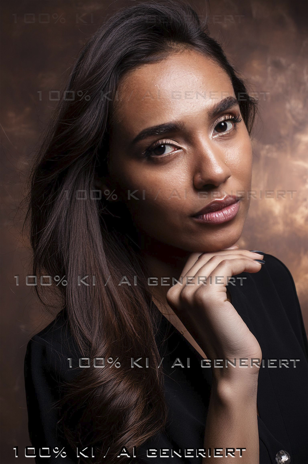 dunkelhaeutige schoene junge frau portraet im Rembrandlight brauner strukturierter hintergrund - dunkelhaeutige-schoene-junge-frau-portraet-im-Rembrandlight-brauner-strukturierter-hintergrund -  -